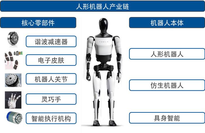 人形机器人产业链:包含“机器人本体”+“核心零部件”两大环节。