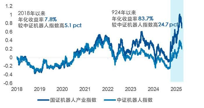 经过修订后,从测算的历史表现看,国证机器人指数2018年以来年化收益率7.8%,较同类指数高5.1pct,长期收益更好;924以来收益率83.7%,较同类指数高24.7pct,指数弹性更好。